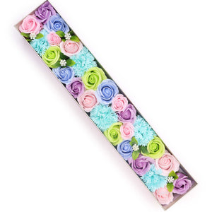 This elegant gift box celebrates new arrivals with understated sophistication. The soft blue palette creates a calming aesthetic, while delicate soap flowers nestled inside offer a luxurious, fragrant surprise. Each box arrives ready to present, featuring a sturdy construction that protects the contents while maintaining an impressive shelf presence. The extra-long format provides ample space for the artfully arranged soap flowers, allowing them to be fully appreciated without crowding.
